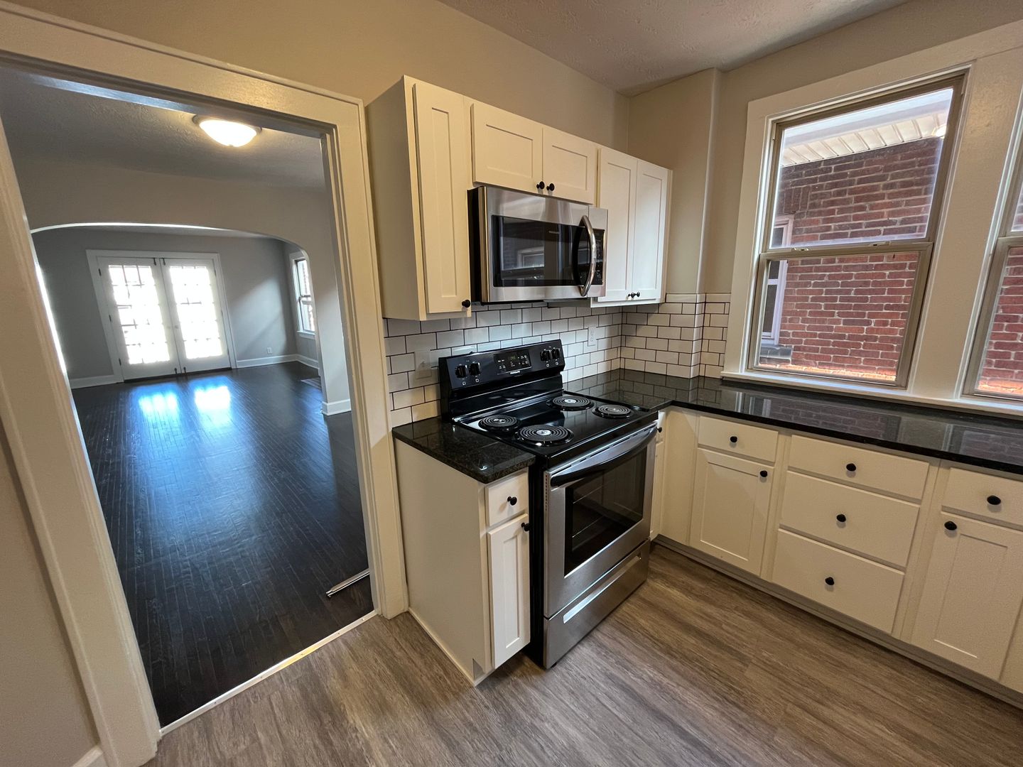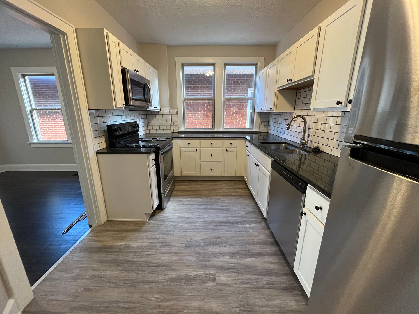 This is a completely remodeled 1-bedroom/1-bath upper level flat on the ground floor in the Old North/North Campus area with close walking distance to N. High Street. Close to OSU campus, I-71, Route 315, bus line, and numerous restaurants, bars, and grocery stores. This home features a living room, dining room, brand new spacious kitchen with stainless steel appliances (refrigerator, electric range, microwave, dishwasher, and disposal), granite counter tops, and a spacious front patio. You'll also enjoy the benefits of a high-efficient furnace, central A/C, a freshly sealed basement (washer/dryer hook-up, and plenty of room for additional storage), and back area with off-street parking. Full-time and dependable maintenance team!